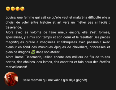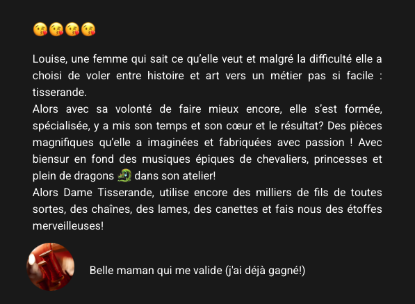 Et pour m'aider à parler de moi j'ai demandé à mes proches de vous laisser un petit mot :